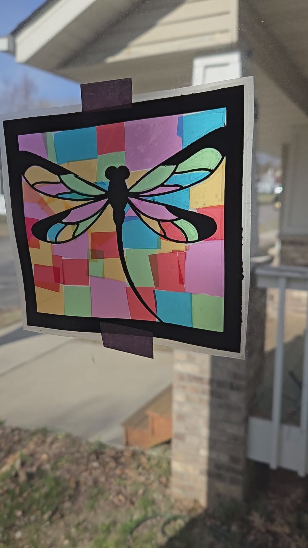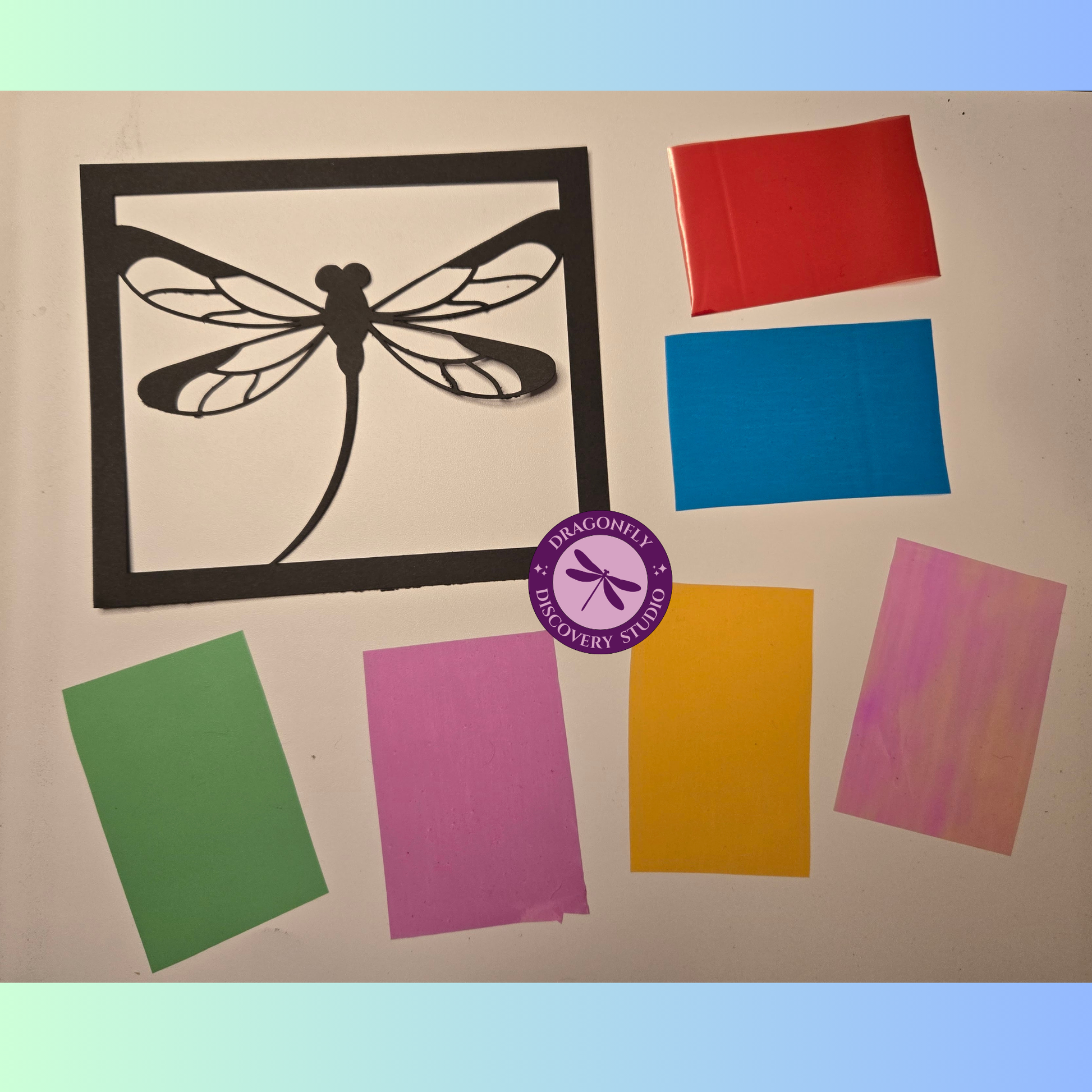- Dragonfly cardstock outline (pre-cut) mounted in contact paper (approx 6x6 inches)