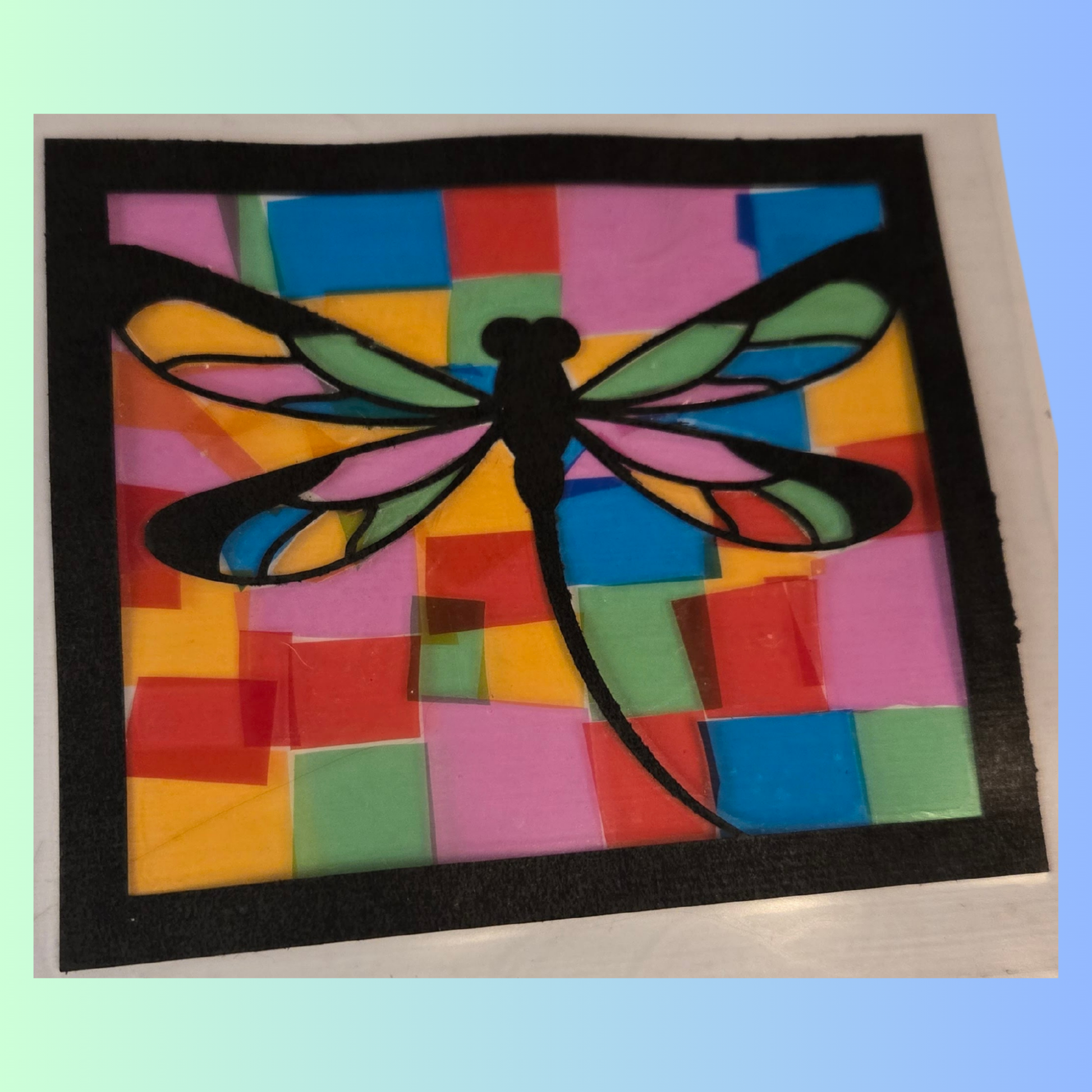 Bring a burst of color to your windows with this fun and easy craft kit! Perfect for kids and adults alike, this kit lets you make a beautiful “stained glass” dragonfly using vibrant cellophane and simple peel-and-stick assembly. No mess, no stress—just colorful creativity!